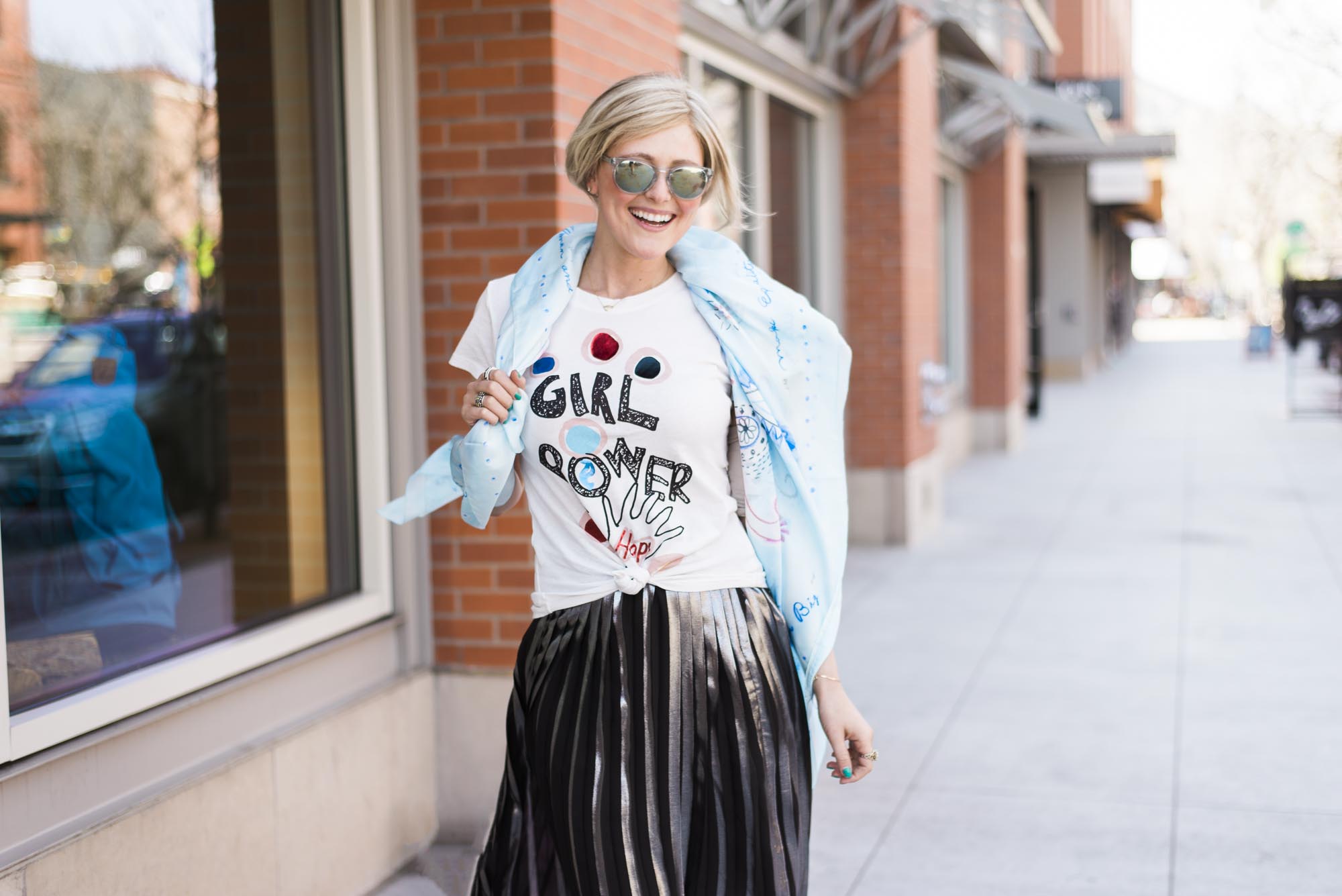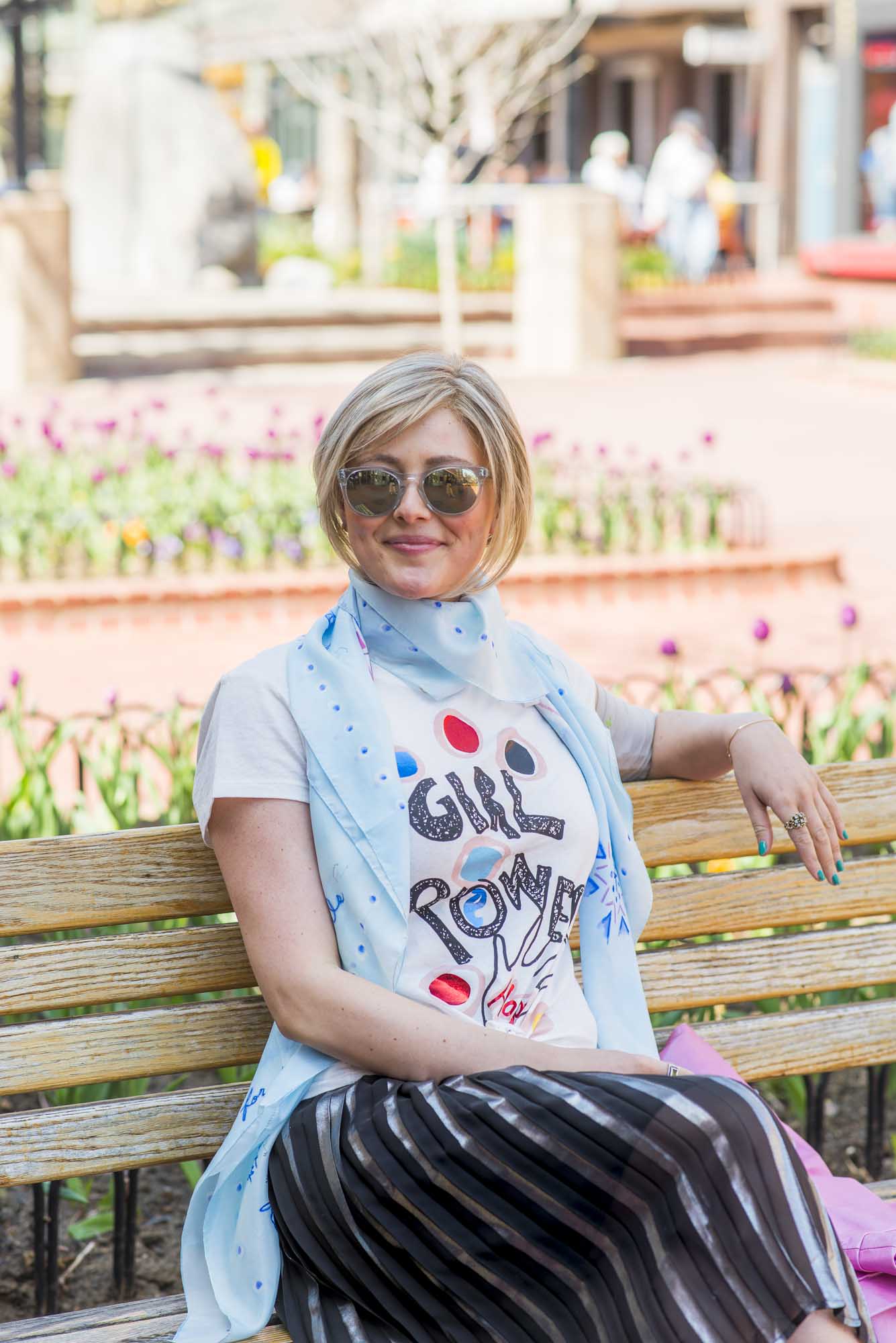 I have always been a supporter of women’s rights and gender equality, but it wasn’t until the recent political explosion and women’s marches that I’ve felt the need, now more than ever, to be vocal about women empowerment, equality and protection. I had a couple speed bumps during my chemotherapy treatment and was unfortunately hospitalized during the women’s marches. I was hit with an overwhelming amount of emotion during the marches. I scrolled through social media in awe of the sea of women from across the nation that stood together to fight for our rights. Since I wasn’t able to participate in person, I vowed to show my support the way I knew best – through fashion.
