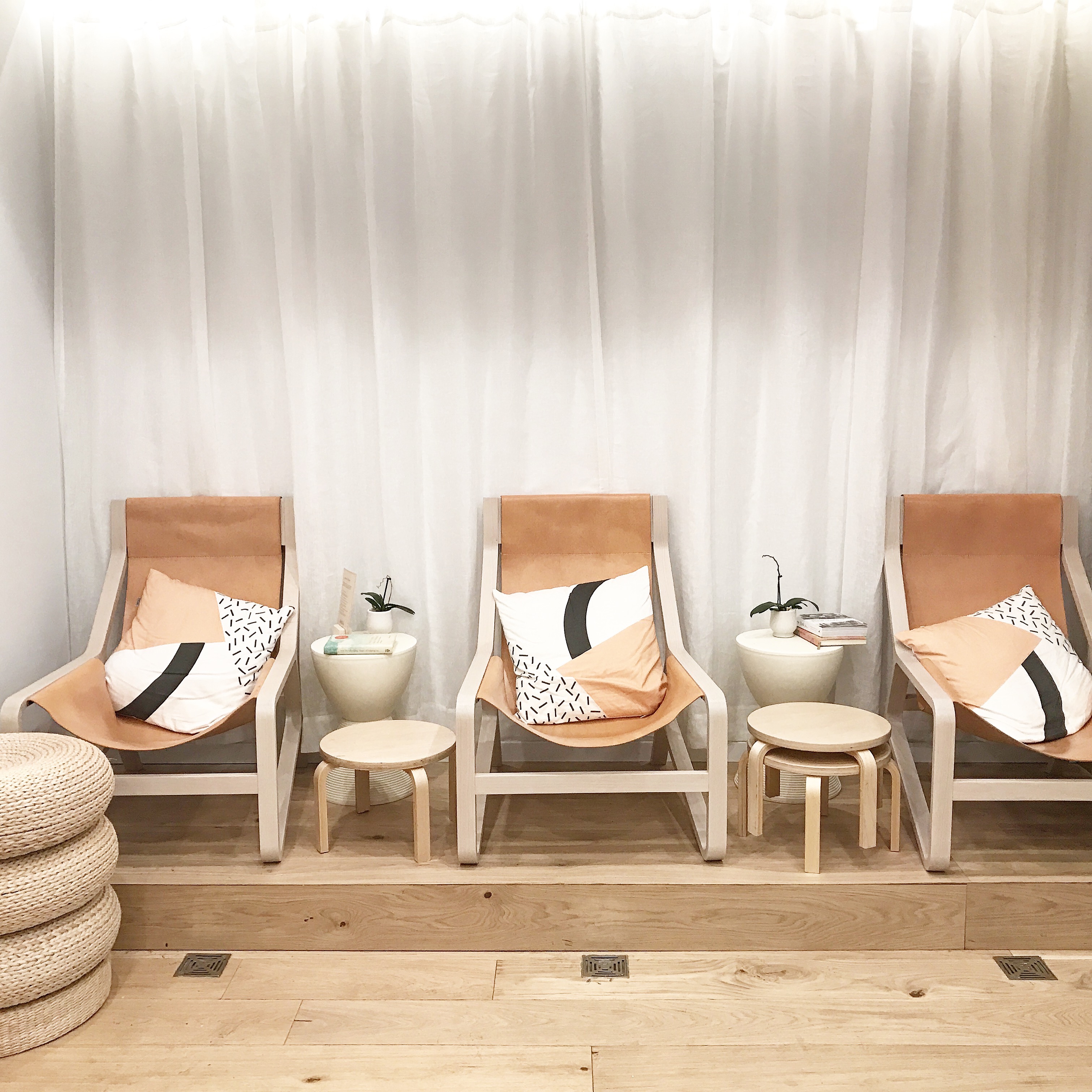 A beaming associate promptly greeted me and asked me to pick out a color as usual and then kindly offered me a drink. I gazed around the studio, sipping my water with fresh lemon, taking in the minimal aesthetic with graphic pops of black, white and millennial pink. The space was a lot smaller than what I expected, however this is New York City, which means, yes, there is a spiral staircase that leads up to a chic loft as well.
